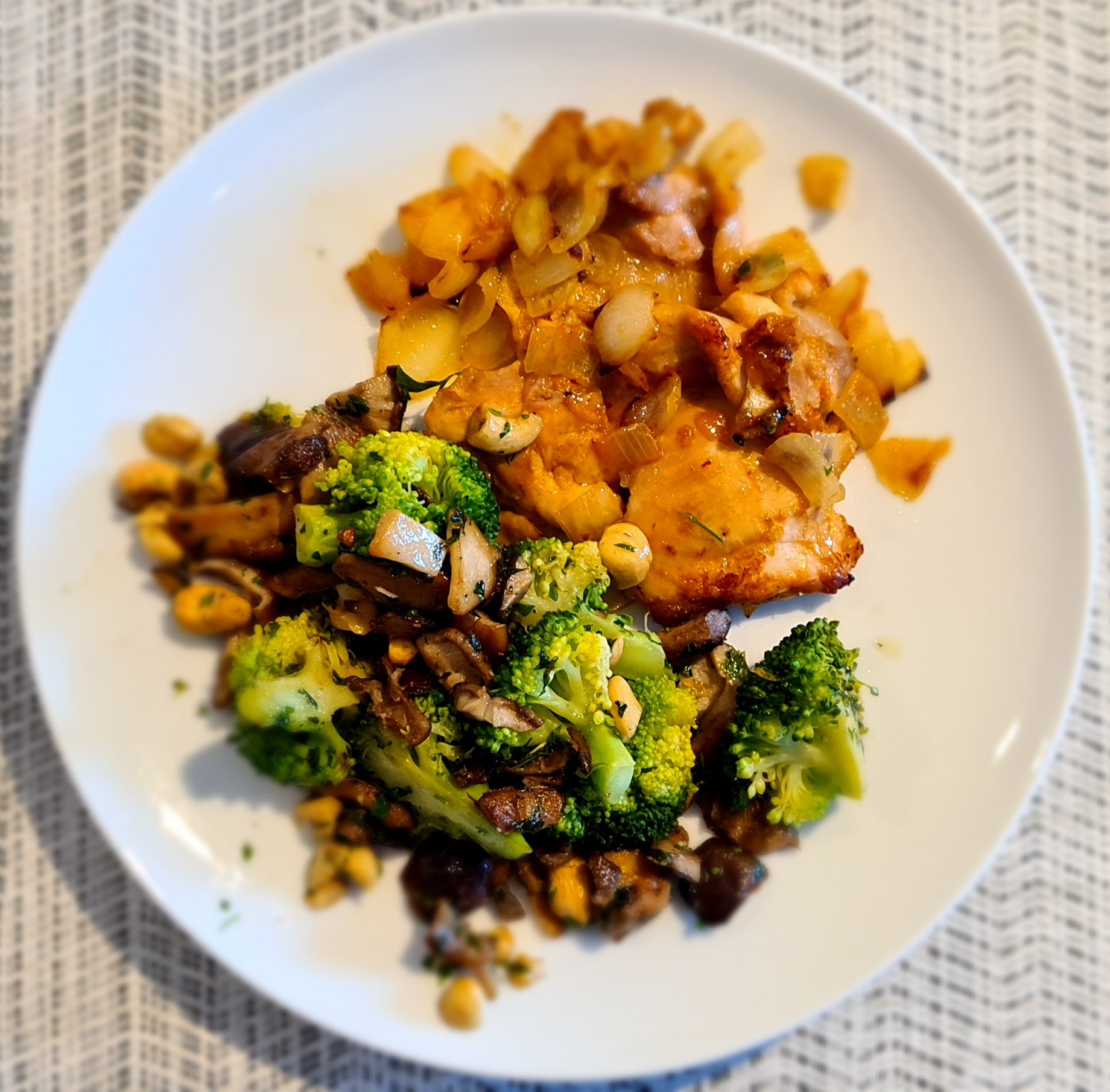 Hot Marinated Chicken With Mushrooms, Cashews and Broccoli